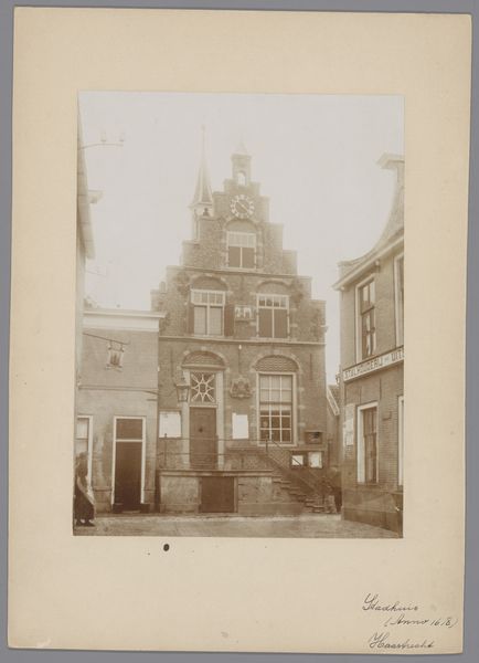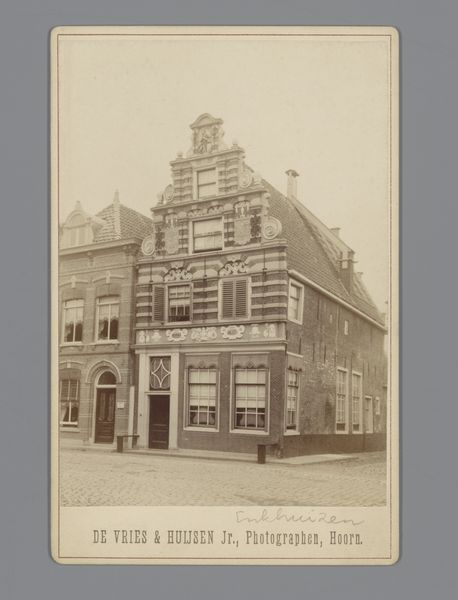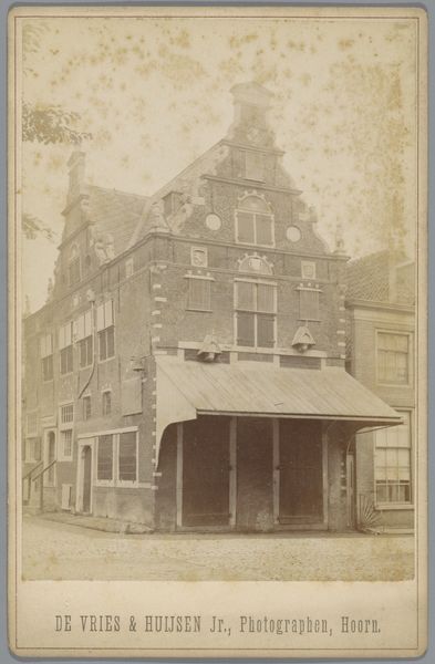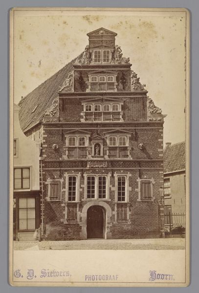 Editor: This gelatin-silver print, taken by Jan Goedeljee sometime between 1850 and 1900, depicts the Latin School on Lokhorststraat in Leiden. It feels almost dreamlike, the sepia tones softening the architectural details. How can we contextualize this image within the broader history of photography and education? Curator: This image, while seemingly straightforward, provides a glimpse into the democratization of imagery. Photography, still relatively new, offered a wider audience the chance to 'see' places like this school. We might ask: who was this photograph intended for? Was it a commercial venture, or did it serve a civic purpose, like promoting local pride in Leiden's institutions? Editor: That’s a fascinating question. It feels like a historical record, but I’m wondering, why this particular view? Why focus on the architecture rather than the students or faculty? Curator: The choice of focusing on the architecture underscores the institution's presence and stability within the city. During this period, civic pride and the belief in the power of institutions were strong. Photographs like these can function as visual testaments to progress and order. It also reflects the limitations of early photography; capturing moving figures would have been challenging. The school is not just a building, but a representation of knowledge and power, carefully presented for public consumption. How might viewers at the time have responded to seeing their city and its symbols presented in this new medium? Editor: That's a great point. Seeing this as a carefully constructed statement changes everything. Thank you! Curator: It shows how photography, even in its early stages, was already deeply embedded in the social and political fabric of its time, shaping how people saw themselves and their communities.
