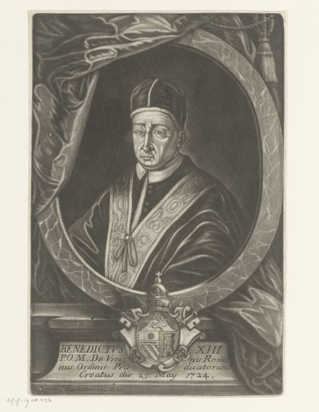 Editor: Here we have Claude Mellan's "Heilige in aanbidding voor het kruis," created sometime between 1608 and 1688. It's a drawing made with pen and ink. The figure seems so intense, almost strained. How do you interpret this work? Curator: I see a potent example of labor and material depiction within a social framework. Note Mellan’s technique: the meticulous use of the pen and ink to produce those strikingly precise lines. The means of production—the artist’s hand and the tools—are integral to the image's meaning. Do you notice the contrasting textures, from the smoothness of the halo to the coarse rendering of the skin? Editor: Yes, there’s a real contrast in texture and weight, especially between the face and the halo. Curator: The emphasis on materials draws our attention to the skill involved in crafting this image, thereby questioning conventional distinctions between craft and high art. Mellan isn't just depicting a religious scene; he's showcasing the capabilities of his materials and his ability to manipulate them. What do you make of the social context evoked by such detailed labour? Editor: It makes me think about the artist's role – how they were perceived not just as visionaries but as skilled artisans within a particular economic system. This drawing highlights their craftsmanship, almost as a form of marketing. Curator: Exactly! This piece becomes less about divine worship and more about celebrating the labor that goes into art production. It transforms the religious narrative into a statement about the material conditions of artistic creation in its time. Editor: So it’s less about religious devotion and more about material creation. I see it now! Thank you. Curator: It shows how a focus on materials opens the door to a broader, richer understanding of art and its production.