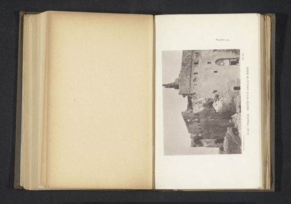 Curator: Here we have a photograph, titled "Twee gezichten op de noordoostelijke toren van de citadel van Jeruzalem," created before 1865 by James McDonald. What are your initial thoughts? Editor: Immediately, I’m struck by the weight and texture. The rough-hewn stone, the stark contrast... it feels incredibly grounded, solid. The scale is almost monumental, even within this small print. Curator: Yes, the composition leverages the geometry of the tower to create a strong visual statement. Note the meticulous detail captured despite the photographic limitations of the era; observe how the lines converge, directing the eye upwards, emphasizing the verticality. The texture itself almost becomes the subject. Editor: And those textures speak to process, don’t they? Think of the quarrying, the transport of the stone, the physical labor involved in its construction. This photograph captures a moment in time, but also implies a vast amount of human effort over generations. I wonder about the individual hands that shaped each block, the societal structure that organized such massive projects. Curator: An astute observation. However, it's critical to consider the Orientalist gaze inherent in its creation. The sharp delineation and stark presentation almost fetishize the “otherness” of the ancient city. This image constructs a narrative, perhaps romanticizing or exoticizing the subject. Editor: True, but perhaps we can consider the photographer's materiality, as well. McDonald was working within colonial structures; his materials were limited. Access itself would have been political. Doesn't the photograph itself become a record of that exchange, however complicated? The very act of documentation reshapes our understanding of both the tower and its historical context. Curator: Point taken. We are left to decipher layers of interpretation then. The pure geometric forms balanced with the cultural weight. McDonald masterfully orchestrates tone, shadow, and shape. I appreciate his artful construction—but not at the expense of understanding what structures influence the work's construction. Editor: Ultimately, I appreciate how this single photographic print manages to provoke complex questions about labor, cultural perspective, and even photography's role in shaping history itself. It leaves me thinking not just about the image but the structures—both literal and societal—that frame it.