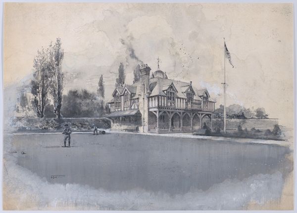 Editor: This is John Piper’s "Capesthorne," currently held at the Tate. The intense reds and blues give it a brooding, almost theatrical feel. What can you tell me about the context surrounding this piece? Curator: Piper often depicted buildings and landscapes threatened by war and industrialization. His work served as a visual record, almost a form of preservation. Do you think that sense of vulnerability comes through in this image? Editor: I do, especially in the reflection on the water, like it could all be washed away. Curator: Yes, the mirroring creates a sense of instability. He was commissioned to record country houses, but he brought his unique vision. This shows us how art can serve both aesthetic and historical purposes. Editor: It's fascinating how the style shapes our perception of history itself. Curator: Exactly. And how institutions like the Tate continue to shape that perception today.