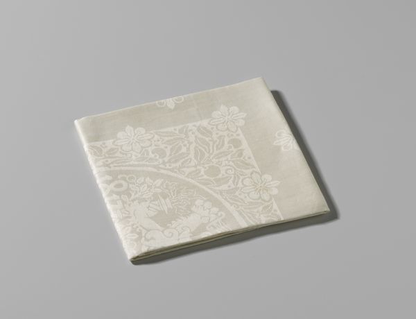 Editor: Here we have an engraving from after 1686, titled "Servet met de verovering van Boedapest door Leopold I, keizer van Duitsland"—or, "Napkin with the conquest of Budapest by Leopold I, Emperor of Germany". It’s printed on paper, and you can see that it’s a functional object—a napkin. What’s interesting is the seeming mundanity of this object celebrating such a historically important event, and it makes me wonder why history would be celebrated in such a daily-use format. How do you interpret this piece? Curator: The choice of a napkin as a medium is incredibly telling. It brings the grand narrative of Leopold I’s victory directly into the domestic sphere. Think about the social context: dining was, and still is, a highly social and performative ritual, especially for the elite. Editor: So, it’s about bringing political power into a domestic context? Curator: Precisely. This napkin isn't just functional; it’s a propaganda tool, subtly reinforcing Leopold’s authority during every meal. The Baroque period thrived on spectacles of power. Commemorating victory, like this conquest, on everyday objects integrated these victories into the fabric of daily life, normalizing and celebrating imperial power. Where do you think these napkins would have been used? Editor: Ah, probably high-status banquets and celebrations—events carefully curated to impress and maintain the social hierarchy. I hadn't considered it as a form of propaganda before. Curator: Exactly! And remember, art like this served a public role beyond mere aesthetics; it helped shape political opinions and maintain social order. It definitely broadens how we look at art history. Editor: It's amazing how something as simple as a napkin can reveal so much about the political and social climate of the time. I’ll definitely be paying closer attention to the objects surrounding artworks from now on!