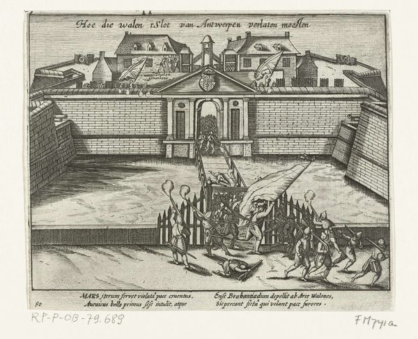 Editor: Here we have "Entry of Don Juan in Brussels, 1577," a baroque-style engraving from 1613-1615 by an anonymous artist, housed at the Rijksmuseum. It's incredibly detailed for an engraving, depicting a cityscape teeming with people and architectural features. What really jumps out is the artist’s technique in creating depth, with the procession winding through the city. How would you interpret this work? Curator: For me, it's a fascinating record of material culture and its social function. Consider the labor involved in creating this print. Engraving was a skilled craft, a trade learned through apprenticeship. The artist, while anonymous to us, was part of a complex network of workshops and printing houses. We should also note the accessibility prints offered. Unlike paintings commissioned by the wealthy, engravings like this made historical events and political figures accessible to a broader, more diverse audience. Do you think this piece was meant to be purely informational or did it serve another purpose? Editor: Perhaps propaganda? It seems to celebrate Don Juan's entry. Could it also be about solidifying power through visual representation and distribution of prints like this? Curator: Precisely. The engraving isn’t simply a neutral document; it's actively constructing and disseminating a particular narrative. Notice the lines of text. Print wasn't just visual; it brought language into wider circulation. That coupling with the image must have shaped understanding, influencing how the depicted event was received and remembered. I encourage you to look closer. The very act of printing, the production and consumption of this object, reveals so much about the social and political landscape of the time. Editor: That's fascinating! I hadn’t considered the process of dissemination itself as a form of messaging, but it makes perfect sense when we’re looking at social consumption and historical narratives. I appreciate seeing art through the lens of production; I have gained an amazing new perspective to observe prints and their value beyond artistic expression.
