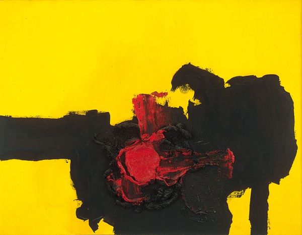 Luis Feito made this painting titled ‘Composition’ with paint, probably oil, maybe acrylic. It’s got that red and black combo, which is always a winner, right? So bold. But look closer—it's not just about the colors. I’m always interested in the push and pull, the tension, between the flatness of the canvas and the illusion of depth that even simple marks can create. The way that big red blob sits there, all raw and unapologetic, feels like a gut punch. Then you got these swooping black gestures wrapping around it. The surface is pretty smooth, but you can still feel the hand of the artist. Like, I can almost see him moving the brush, deciding where to put the weight. Think about the work of Franz Kline and other abstract expressionists and their big, bold gestures. But Feito? He’s got his own thing going on, stripping it down to the bare essentials. It’s like a conversation that's been happening for decades, a back and forth between artists, each adding their own voice to the mix.