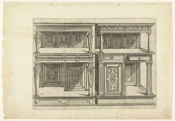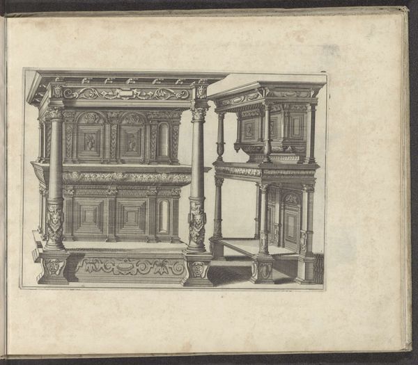 Pieter van der Borcht I created this sketch, "Twee buffetten," or "Two Buffets" in English, sometime between 1545 and 1608. During the 16th century, the Netherlands was a hub of artistic innovation, deeply influenced by the Renaissance and the Reformation. Van der Borcht's detailed sketch gives us insight into the era’s material culture, specifically the design of furniture for the wealthy. Consider the elaborate details and symmetry of the buffets. These weren't just functional pieces, but symbols of status. In a time when sumptuary laws often dictated what people could wear or own based on their social standing, owning such a piece of furniture would have been a clear marker of wealth and power. The design also reflects the cultural values of the time, where displays of wealth and orderliness were highly prized. Van der Borcht’s sketch offers a glimpse into how the elite lived, showcasing their commitment to both luxury and the aesthetic principles of the Renaissance. It makes you wonder, what kind of gatherings would have taken place around these buffets, and who was excluded from these displays of opulence?