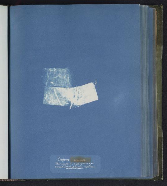 Editor: Here we have Anna Atkins' "Conferva implexa", a cyanotype from the mid-19th century. The stark white algae against that vivid blue is quite striking! What do you make of it? Curator: The cyanotype, with its Prussian blue hue, speaks to me of hidden worlds brought to light. Notice how Atkins chose this particular algae. "Conferva implexa," the entangled algae, might symbolize interconnectedness, not just within the natural world, but within scientific knowledge itself. What feeling does that entanglement evoke in you? Editor: That makes sense! It feels almost like a visual representation of chaos within order. The crisp detail highlights the delicate beauty, though. Curator: Exactly! The detail is critical. Atkins's scientific training meant that accurately rendering these forms was key, yet there's a symbolic resonance, a reflection on how we categorize the natural world. Do you think there’s significance in her choice of photography, a relatively new technology at the time? Editor: Absolutely. Photography promised objectivity, almost like capturing truth itself. Curator: Precisely. But consider: the cyanotype process itself transforms the object. It’s not a simple copy, but an interpretation. Atkins becomes an alchemist, turning seaweed into art, science into cultural memory. It reveals to us a moment in time when art, science, and photography intertwined. Editor: It’s incredible how much history and interpretation can be packed into a single image of seaweed! Curator: Indeed. It invites us to question the boundaries of what we know, how we see, and what it all signifies, even today.