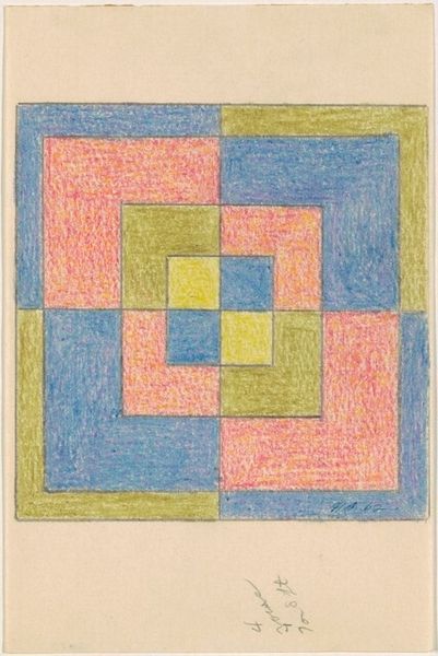 Editor: This is "The Fourth 'Book of Schemes'. Album #2, the First Folder," a mixed-media painting by Valerii Lamakh from 1978. The geometric abstraction really strikes me; it’s so visually captivating with its vibrant, almost hypnotic pattern. What do you see when you look at it? Curator: This piece, to me, speaks volumes about the socio-political context in which it was created. As an artwork made in 1978, what statements might this otherwise abstract artwork make during a time when rigid Socialist Realism dominated the art scene of the Ukrainian Soviet Socialist Republic? Do you see it potentially representing a subtle form of rebellion or a yearning for individual expression beyond the officially sanctioned style? Editor: I hadn't considered the political undertones. So, you're saying the act of creating this kind of geometric abstraction itself was a statement? Curator: Precisely. It’s not just about the visual appeal; it’s about the artist's defiance against the prescribed artistic norms. The rigid structure of the repeating patterns can also be interpreted as a commentary on the restrictive nature of Soviet society, don't you think? And where would it have been shown? What was the public role of artwork like this at the time? Editor: It’s fascinating to think about art as a form of silent protest, a subversive act through geometry and colour. The repetition, now that you mention it, feels less decorative and more…deliberate. It feels like a coded message. Curator: Absolutely. Lamakh’s "Book of Schemes" wasn’t just about aesthetics. It was about challenging the boundaries of artistic freedom and engaging with a visual language that circumvented censorship. Editor: I see it completely differently now. I initially perceived just a visually appealing composition, but you've helped me see its depth and context within the broader political and cultural landscape. Thanks! Curator: It's about understanding art's public role and its dialogue with society. Examining art through this lens really makes history come alive!