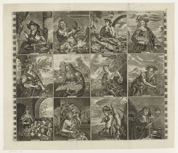 This anonymous print presents seventeen scenes, each illustrating a proverb, a popular form of moral instruction. Look closely at the imagery: peasants engaging in various activities that, on the surface, seem like mere depictions of everyday life. However, each scene encodes a deeper, didactic meaning. Take, for example, the recurring image of animals. Animals feature prominently across cultures, often embodying human traits—foxes for cunning, doves for peace. Here, their presence isn't just decorative, it's symbolic, reflecting human follies and virtues through allegory. Recall Aesop's fables or medieval bestiaries; the use of animals to mirror human behavior is ancient and widespread. Consider how such symbols persist and transform. In ancient Egypt, animals were gods; in Renaissance art, they signified moral qualities. The power of these images lies in their capacity to engage with our collective memory and the subtle threads that connect us to past generations, shaping our understanding. The wheel turns, and the symbol evolves, its essence enduring across time.