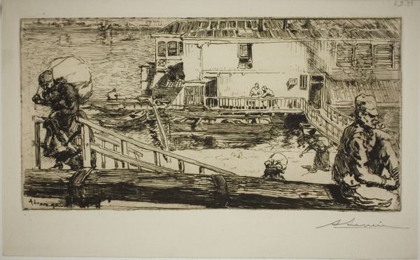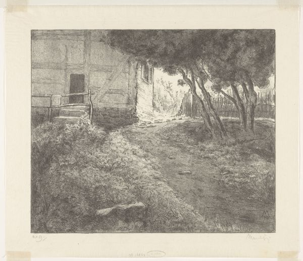 Willem Adrianus Grondhout made this etching of a mill in Voorburg, using a monochromatic palette that feels both intimate and expansive. The art of etching, like painting, really reveals the artist's hand, doesn't it? Look at the mass of lines he uses to create the thatched roof. The density is amazing. These marks give the roof a tactile quality, almost as if you could reach out and feel the roughness of the straw. You can see it in the reflection in the water too. But what I love most is how Grondhout uses these dark lines, not just to describe form, but to create a mood. This seemingly simple scene is full of atmosphere. It reminds me of Whistler, actually, but with a more grounded feel. Grondhout’s focus on the everyday, transforming a humble mill into something truly captivating, is what makes this print so special. It shows us that beauty really is everywhere, if you take the time to look.
