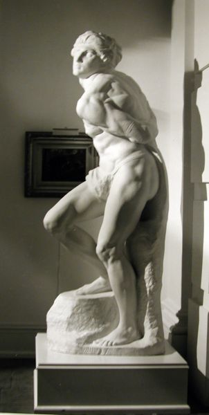 Here, in the Louvre, is Michelangelo's "Rebellious Slave," carved in marble, though its date remains unconfirmed. The statue compels us through its striking depiction of a male figure caught in the act of struggle. The pronounced musculature and dynamic pose create a visual tension that is palpable, and the marble's texture adds a tactile quality to the work. Michelangelo employs the body as a site of conflicting forces. Semiotically, we see the signs of bondage—the figure's bound hands and strained posture—yet these are countered by the figure's defiant twist and muscular form. The contrapposto stance, typical of classical sculpture, is pushed to its limit, destabilizing the traditional balance. The very act of carving, of releasing the figure from the stone, can be interpreted as a metaphor for liberation, challenging fixed meanings of power and subjugation. Consider the tension between the smooth, polished skin and the rough, unfinished base—a visual metaphor for the ongoing struggle between freedom and constraint. This tension is not merely aesthetic; it speaks to deeper philosophical concerns about the nature of human existence and the will to overcome imposed limitations.