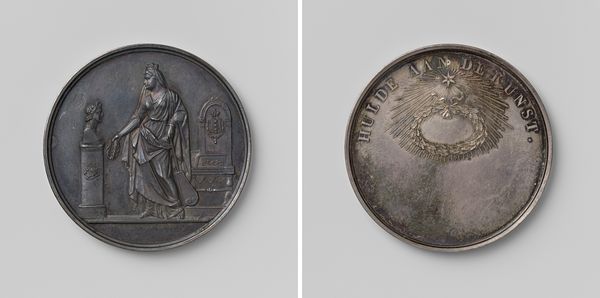 This is a commemorative coin, made of silver by Harald Conradsen to mark the death of Bertel Thorvaldsen, a renowned sculptor in Rome. Thorvaldsen's neoclassical style, inspired by classical antiquity, dominated European sculpture in the early 19th century. The coin presents two sides of his identity. On one side, a classical portrait of Thorvaldsen with the inscription "Albertus Thorvaldsen Danus Svlptor." His depiction recalls the heroic statuary of ancient Greece and Rome, aligning him with the artistic values of the classical world, while his Danish nationality is also proclaimed. The reverse shows a chariot pulled by four horses with a figure reminiscent of Pheme, the ancient Greek goddess of fame and renown. This coin tells us about the cultural institutions of the era and the cult of the artist. In death, Thorvaldsen's legacy was immortalized through institutional recognition. Such commemorative objects remind us that artistic greatness is not just about individual talent, but also about the social and cultural systems that elevate certain figures to iconic status. By exploring archives, letters, and critical reviews, we can understand the cultural context that gave rise to such commemorative practices and the enduring power of art to shape public memory.
