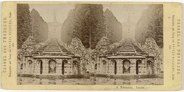 Adolphe Godard captured this stereoscopic image, "Gezelschap in de pagode in de tuin van de Villa Pallavicini in Pegli," offering us a glimpse into 19th-century European fascination with exoticism. Here, a group gathers inside what appears to be a pagoda-like structure, set within the lush gardens of an Italian villa. This architectural exoticism reflects the era's interest in orientalism, which frequently constructed idealized or imagined versions of non-Western cultures. The image hints at the intersection of class and cultural appropriation; the villa's inhabitants, likely members of the European elite, are enjoying a space that imitates Eastern architectural styles. Godard’s photograph captures a moment of leisure and cultural tourism, yet it also underscores the power dynamics inherent in the consumption and display of non-Western cultures. It prompts us to consider how cultural exchange can reinforce social hierarchies and shape our understanding of identity and place.