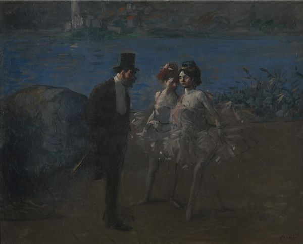 Jean-Louis Forain captured this scene with oil on canvas, immortalizing a moment "In the Wings." The ballet dancer, adorned with the colors of youth and spring, embodies both innocence and a subtle allure. Consider the gesture of her hands clasped in her lap. Across epochs, this pose echoes representations of modesty and restraint, yet here it carries a tension, a suggestion of suppressed energy. We see faint similarities in Renaissance portraits, where the subject’s hand gestures were similarly imbued with coded emotional and social meaning, reflecting the subject’s inner state. The watchful gaze of the gentleman at left adds to the psychological complexity. His presence may remind one of images of power dynamics, of surveillance, echoing the poses of patrons in earlier art forms. The motifs of the gaze, of presentation and observation, are timeless. They continuously reappear in the theater of life, reflecting our collective fascination with performance, power, and human connection.