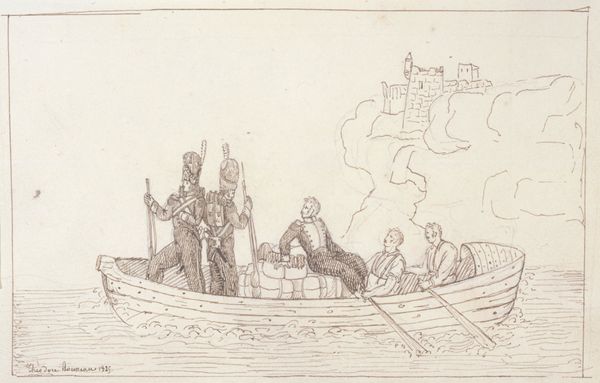 Jean Antoine Fraisse created this intricate drawing with pen and black ink, taking inspiration from Persian, Indian, Chinese, and Japanese art. Note how the leisurely river journey is depicted, with figures traveling in covered boats. These boats, adorned with canopies and intricate details, suggest not just transportation but also leisure and status. The depiction of water is a symbol of purity, tranquility, and the cyclical nature of life, often appearing in artworks across cultures as a representation of the subconscious. Consider, too, how such images of travel and leisure recur across cultures and epochs—from Egyptian funerary boats carrying souls to the afterlife, to Venetian gondolas gliding through canals. This drawing echoes the continuous human desire for exploration, relaxation, and passage through life's currents, manifesting across diverse cultural landscapes, reflecting our collective memories and aspirations. The journey motif continues to resurface, evolving and taking on new meanings.