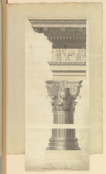 Curator: Here we have an image from before 1894 depicting a pillar with a symbol for justice. It stands at the front of the Palace of Justice in Brussels, Belgium. Editor: That is solid! It gives a very solemn, almost severe impression. The detail is amazing - very finely made. The weightiness of the pillar is something else, it gives the impression of something quite heavy-handed. Curator: Yes, the anonymous artist clearly wanted to emphasize the immutable nature of justice through neoclassical form. This is a print, one could see such neoclassical images becoming the emblems of the court system. Academic art became closely intertwined with legal and political authority. Editor: Totally - all those clean lines and geometric details add to the impression. It feels cold, and somehow dehumanizing. Justice reduced to pure rationality. Do you think anyone considered, perhaps, that justice should feel warmer or have heart? Curator: Well, within Neoclassicism, feeling takes a backseat to reason and order, a value which obviously suited those keen to promote rationality in the administration of law and, therefore, society. The artist here really emphasises the idea of justice as an impersonal and enduring principle. I would consider how new technologies such as architectural prints further codified these images. Editor: That's an interesting idea. Thinking about the cultural message behind this. Does the Justice that we can grasp by pure rationality reflect real-life justice? It brings to mind similar architectural patterns, repeated across other halls and columns. Cold halls… and so many echoes. I wonder what it felt like to visit. Curator: This representation highlights the historical aspirations of the justice system. This image underscores how these architectural elements were essential in conveying institutional strength and authority. Editor: Yeah, the image has gotten me thinking now about where we place our trust. We're leaving the digital and moving into something solid. Stone or a drawing of stone… Where is truth to be found? Curator: Well, that gives us a lot to contemplate about justice. Thanks for sharing those wonderful insights.