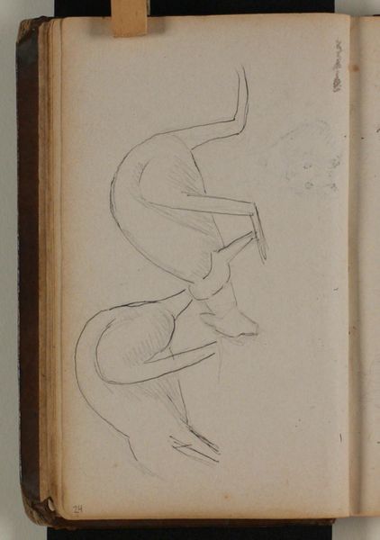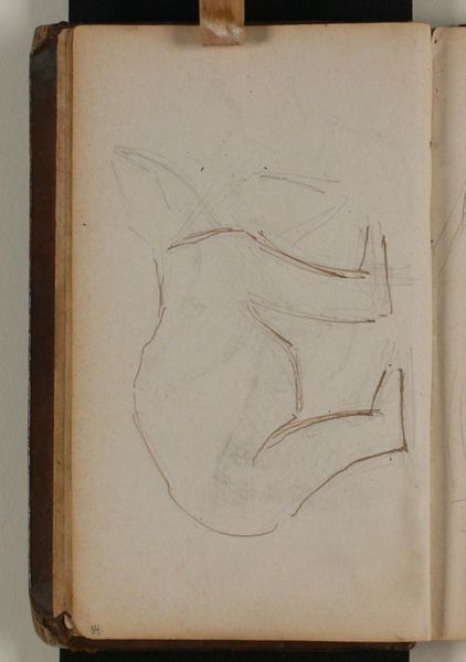 Curator: Here, in this sketchbook page, we have Niels Larsen Stevns’ “Isbjørns hoved i profil” or “Polar Bear's Head in Profile”, created sometime between 1864 and 1941. What strikes you first about this rather simple sketch? Editor: A looming ecological dread, maybe? There's something profoundly unsettling about the tentative lines tracing the bear's profile; a stark reminder of the fragility of Arctic ecosystems and the brutal reality of climate change, right? The sketchiness of it only adds to this feeling of precarity. Curator: It’s amazing you feel that, actually. What strikes me is the very casualness, it feels like a quick doodle from a master artist, a study of form and shadow rendered on a scrap of paper. It’s charming! Editor: Perhaps it's both. The simplicity almost amplifies the underlying threat; the polar bear, majestic yet vulnerable, reduced to a few pencil strokes… it’s powerful. This vulnerability isn't just about the animal itself; it is representative of the wider existential concerns. Are there colonial implications within its exhibition in the National Gallery of Denmark? Curator: Well, it certainly wasn’t created for this purpose! Stevns was, first and foremost, an artist obsessed with form, wouldn’t you agree? To read into that such overt...meaning may obscure his artistic pursuit. This might simply be a preparatory study! Editor: But art never exists in a vacuum! An image of Arctic wildlife can only ever be looked at now through a very particular ecological lens. These sketches aren't simply about line and form, and they offer a historical glimpse into coloniality, naturalism, and evolving ecological sensibilities, and the role of art within. Curator: Fair point. But still, that sketchy line… almost an anticipation, rather than a finalized thing. Editor: Precisely—art remains contingent. A piece like this reminds us that what we see is mediated, incomplete, subject to historical forces beyond its creation. We see polar bears not just as figures but as symptoms of a broken world. I wonder what future generations will see in them… Curator: So, maybe art is indeed less about fixed meaning, and more about the conversation it starts. This casual sketch seems to be having an extraordinary conversation!