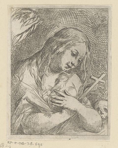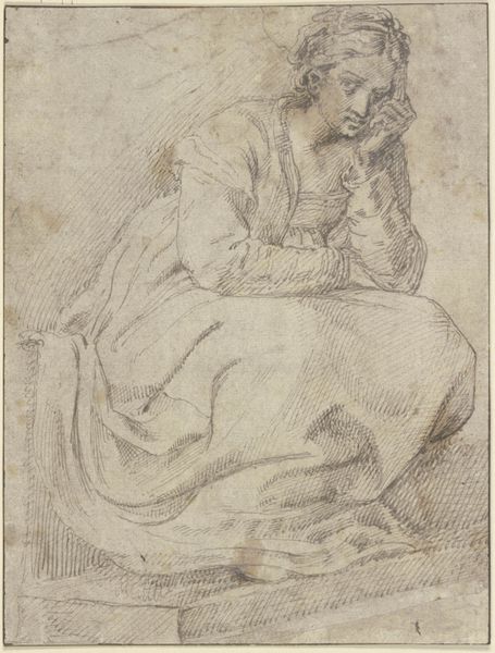 Ludovico Carracci made this drawing of a praying youth with red chalk, sometime around the turn of the 17th century. The beauty of a drawing like this is in the directness of the artist’s hand. You can see how the chalk is built up to create shadows and volume. Carracci's choice of red chalk lends a warmth and intimacy to the image, making the figure feel very present. The use of chalk allowed Carracci to achieve a range of tonal variations and subtle gradations, contributing to the overall sense of depth and realism. Red chalk was a common choice for drawings in this period, valued for its earthy tone and its ability to mimic the sanguine complexion of human skin. Think about the labor involved in creating this image. From the preparation of the chalk itself, perhaps by grinding natural pigments, to the careful layering of strokes on the paper. Drawings like this were often studies for larger paintings, but stand on their own as works of art. They remind us that the act of making is central to the creative process, and that even a simple material like chalk can be used to create something truly beautiful.