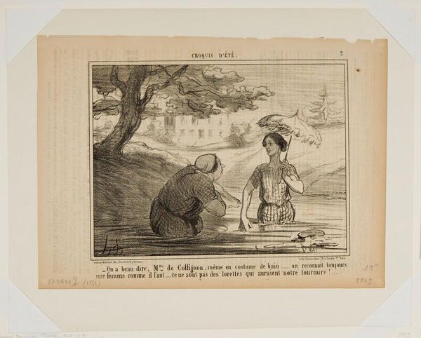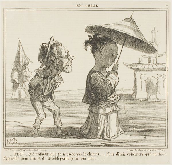 Honoré Daumier created this lithograph, titled "T'nez not' maitr' en voila un p'tit..." as part of a series of satirical prints. In it, a well-dressed bourgeois hunter, gun in hand, is being directed by a peasant toward a small bird, illustrating tensions between social classes. Daumier, working in 19th-century France, was deeply critical of the bourgeoisie, and his art often held a mirror up to their affectations and exploitative practices. Here, the hunter, stiff and overdressed, is in stark contrast to the peasant who, despite his local knowledge, is relegated to a subservient role. The peasant's coarse features and posture underscore a societal hierarchy, one where rural labor is subservient to urban wealth. Daumier used his lithographs to stir the emotions of those who felt disenfranchised, fostering solidarity through shared experience and social commentary. His work serves as a historical document of class struggle, capturing the emotional weight of inequality through the accessible medium of print.