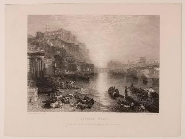 Curator: This is James Tibbits Willmore's "Venice: the Dogana." Editor: It feels so still, almost dreamlike. Look at the way the water reflects the buildings—it's like the city is mirrored in its own lagoon. Curator: Willmore was known for his skill in capturing atmospheric effects. These prints were widely circulated, shaping perceptions of Venice for many. Editor: The sheer volume of craft involved in producing and distributing prints like this is staggering. Each one touched by so many hands. Curator: Indeed. They democratized art, making it accessible to a wider audience, influencing taste and cultural values on a broad scale. Editor: Seeing this I can't help but think about the physical labor, the materials sourced and shipped, each print a product of a complex system. Curator: Considering its role in shaping the romantic vision of Venice is essential. Editor: It is a reminder of the human effort behind every image.
