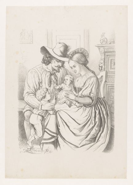 Editor: This ink drawing on paper, "Young Woman Spanking a Child with a Rod," by Jean Baptist Leprince, seems… intense. There’s a strange domesticity to the scene, yet it depicts a moment of violence. What's your take on this artwork? Curator: It’s fascinating how Leprince uses the rococo style to frame what is, as you pointed out, a very complicated moment. Look at the setting: a domestic scene with soft lighting. But consider the power dynamics. A woman, presumably the mother or caretaker, is enacting physical punishment on a child. How do we reconcile the gentle lines with this act? Editor: So you're saying the beauty of the style might be masking the more difficult themes at play? Curator: Precisely. Think about the historical context: Who held power? Who was disciplined? Was this form of discipline considered normal? Or, perhaps Leprince is subtly critiquing it? Editor: I never thought about the implications of discipline being portrayed in such a delicate, almost idealized, way. Curator: These images offer a window into past societal norms, prompting us to question their underlying values and biases, right? It encourages a broader understanding of power dynamics inherent within family structures, especially how gender roles dictate expressions of authority. Editor: It's troubling and eye-opening to think about discipline in this historical and social context. Thanks for bringing that up! Curator: Of course. I think what Leprince unwittingly highlights through the elegance of his rococo style are those normalized structures of violence that continue to resonate today. It asks us to consider what has changed and what remains.
