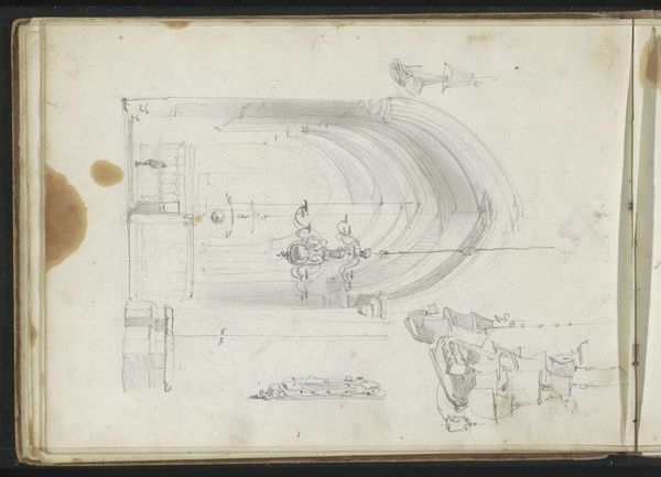 Maria Vos made this sketchbook page with graphite on paper, sometime in the 19th century. A modest medium, and quickly executed, the drawing's real value lies in its process. Looking closely, you can see how Vos uses the graphite to suggest a variety of forms; architectural details are juxtaposed with sketches of trees, layering line work to create depth. It is not about a final product, but about an activity – the artist's hand moving across the page, as she trains her eye. Sketchbooks like this were essential tools for artists in the 19th century. Before photography, drawing was the primary means of capturing and studying the world, and played a vital role in artistic training and documentation. They allowed artists to rapidly record observations and explore compositions, forming a crucial step in the artistic process. Vos's sketch, then, shows a certain kind of labor: the quiet effort that underlies more finished, presentable works of art. By valuing the process as much as the product, we gain a richer appreciation of her work.