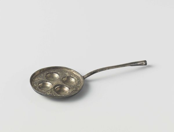 Editor: Here we have a spoon with a rounded bowl and straight, flat handle with a hexagonal cross-section. It was crafted sometime between 1590 and 1596, attributed to an anonymous artist, and currently resides in the Rijksmuseum. I'm immediately struck by how humble and everyday it appears. What's your take? Curator: It is humble, isn’t it? When looking at everyday objects from the past, it’s key to consider their societal context. Something as simple as a spoon reveals insights into class structures and material culture. Think about who would have owned such a spoon, what materials it's made from, what kind of food it would have been used for. What does this object tell us about dining customs and access to resources during the late 16th century? Editor: That’s a really good point. I hadn’t really thought about the class implications. So, its design… does the straight handle indicate something about functionality or aesthetics? Curator: It suggests both, possibly intersecting. The straight, flat handle might reflect a practical concern, for ease of use and cleaning, while the hexagonal cross-section could have been a subtle marker of status. A more elaborate spoon might signify wealth and power. Also, let's think about gender. Were spoons gendered objects in any way? Who made them? Who used them most frequently? Editor: I suppose the person who spent more time in the kitchen. Thinking about the domestic space provides such a useful frame, I never thought that a spoon could be such a loaded object. Curator: It’s precisely in the mundane where we often uncover the most profound social narratives. Paying attention to everyday items enables us to rethink power structures and lived experiences of the past. Editor: Thank you. That's given me so much to consider, and so many new questions about something I previously took for granted.