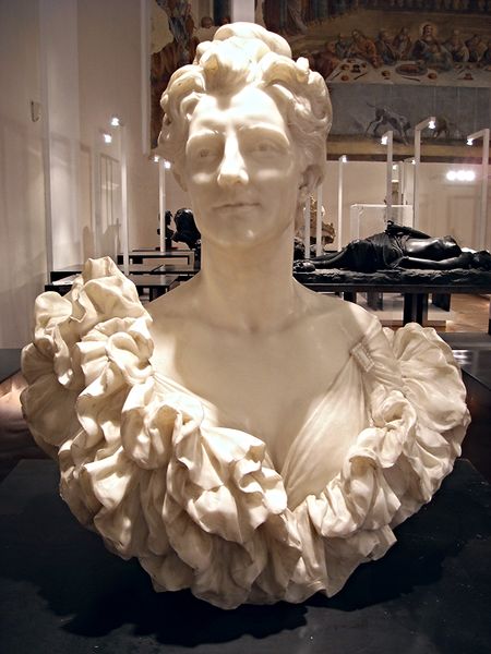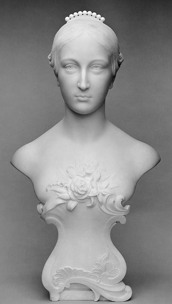Editor: Here we have Rodin's marble bust, "Portrait of Varvara Yeliseyeva," created in 1906. There's such a stark contrast between the smooth, almost idealized face and the roughly hewn texture of what I think is her shawl. What's your interpretation of this contrast? Curator: The material choices are fascinating, aren’t they? Notice the explicit labour involved; the polished face showcases skill, almost a mastery, while the unfinished shawl displays the artist's active making. Think about what it means to *not* completely transform the raw material. Editor: It’s almost like revealing the process, the labor, rather than just presenting a finished product. Is he commenting on art production itself? Curator: Precisely. And what was the role of marble as a valued, luxury commodity in this process? Was this commissioned or a personal project? Knowing who funded this labor, or whether it was speculation, tells us something critical about its meaning. What about her status as the subject? Does it tell us how this artwork could function socially? Editor: So, even a portrait can be understood through the lens of production and social context? That’s much more than I initially considered. Curator: Absolutely. Art isn't made in a vacuum. It's material, it's labour, it's tied to capital and class. Look closely: this work encapsulates social and material relationships. Editor: I see the artwork in a totally different light now, and all of those points provide interesting context for the culture that fostered this portrait. Thanks. Curator: My pleasure. Keep questioning how art is produced and consumed; you will always be digging below the surface of its appearance to its meaning and power.