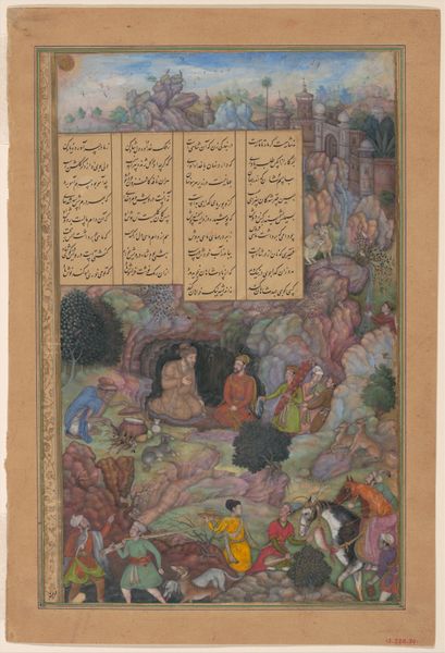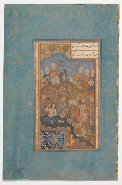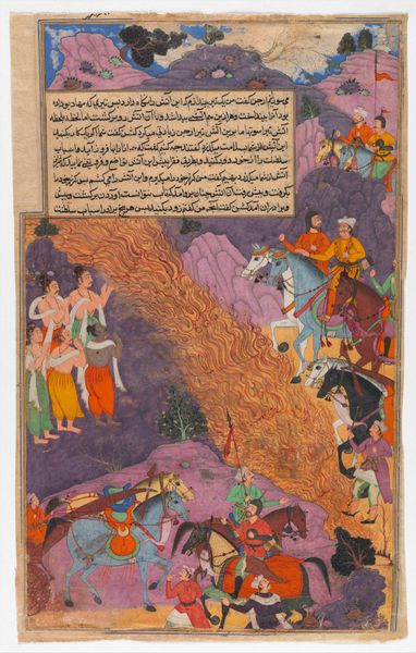 This painted page from a Zafarnama, or Book of Victories, by Sharaf al-Din 'Ali Yazdi, depicts a chaotic battle scene filled with warriors clashing amidst a mountainous landscape. Notice the repetition of the mounted warrior motif—a symbol of power and military prowess seen across cultures, from ancient Roman cavalry to Renaissance equestrian portraits. These figures, locked in combat, recall similar struggles depicted in ancient Greek friezes. The sense of movement and conflict is palpable, mirroring the eternal human drama of war. Consider the symbolism of the landscape itself: craggy mountains, recurring motifs across Persian miniatures, act as barriers and stages for conflict. One can trace this back to the classical world and its emphasis on the sublime horror of nature. Ultimately, the artist presents a scene not just of historical battle but of timeless human struggle.