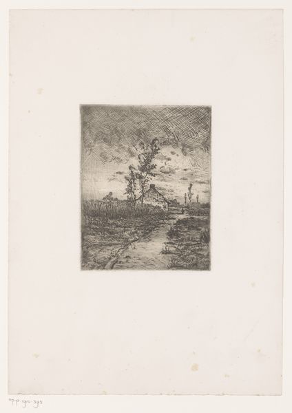 Editor: We’re looking at "Efterår. Vindblæste træer," or "Autumn. Wind-Blown Trees," by Thorvald Niss, likely created between 1842 and 1905. It's a landscape print, an engraving on paper. I'm struck by how desolate and exposed the scene feels. What do you see in this piece? Curator: Well, placing it in the context of late 19th-century Denmark, one might consider the burgeoning national romantic movement. Artists were turning to the local landscape for inspiration, attempting to define a uniquely Danish identity. The wind-swept trees, rendered with such stark lines, could be interpreted as symbols of resilience, a metaphor for the Danish spirit weathering political or social storms. How does this landscape fit into your understanding of the public role of art? Editor: That’s fascinating. I hadn’t thought about it in terms of national identity. I was more focused on the isolation of the scene. Does the starkness also relate to specific artistic institutions of the time or political motivations for this depiction? Curator: Absolutely. Consider the Copenhagen art scene – the Royal Danish Academy, for example. Niss, as a trained artist, would have been deeply embedded in these institutions. Were there prevailing aesthetic tastes dictating what was considered "Danish" or worthy of artistic representation? It's worth investigating if this seemingly objective landscape is actually performing a specific kind of cultural work. What kind of patronage may have been prevalent at the time? Editor: That makes me wonder if the lack of people is a deliberate choice. Showing nature as something untamed, something fundamentally Danish before modernization… Curator: Precisely! Think about who was consuming this art. Was it an emerging middle class seeking to define their own values? A landed gentry trying to solidify a particular vision of the nation? The politics of imagery are always at play. It may function to construct an idealized view of the nation, masking social realities of the period. Editor: That gives me a lot to think about. I hadn’t considered the social forces shaping what seems like such a simple image. Thanks! Curator: It highlights how even seemingly straightforward landscape prints can be powerful carriers of cultural and political meaning, shaped by their historical context and institutional frameworks.