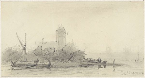 Editor: This is Denman Waldo Ross's sketch, "View of Venice, Italy." It's a simple drawing, just pencil on paper, but I'm really drawn to its hazy, almost dreamlike quality. What's your take on this piece? Curator: It evokes Venice, but it's important to ask: Whose Venice? Ross, an American, presents a vision deeply rooted in his own cultural perspective. The light, the open composition... it's a tourist’s Venice, perhaps, sanitized and picturesque. Editor: Sanitized? Curator: Yes, where are the working class? The complexities of Venetian life are simplified into a pleasing vista. By focusing on the aesthetic, we risk overlooking whose stories are being erased. Editor: That gives me a lot to think about when looking at this piece now.