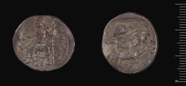 Curator: Here we have a denarius of P. Clodius M.f., struck in Rome. What whispers to you as you gaze upon it? Editor: A sense of contained power. That profile is so sharp, so Roman... you can almost feel the weight of history in your hand. Curator: Indeed. This coin, a little over 3 grams, offers us a glimpse into the socio-political landscape of ancient Rome. Editor: It's remarkable how such a small object can embody so much. It’s like holding a secret handshake from the past. Curator: Absolutely. Coins like these weren’t just currency; they were potent symbols of power and propaganda, circulating messages far and wide. Editor: And now, centuries later, it prompts us to contemplate what survives, what endures, and what fades away. Curator: A silent dialogue across millennia, wouldn't you agree? Editor: I suppose so, yes.