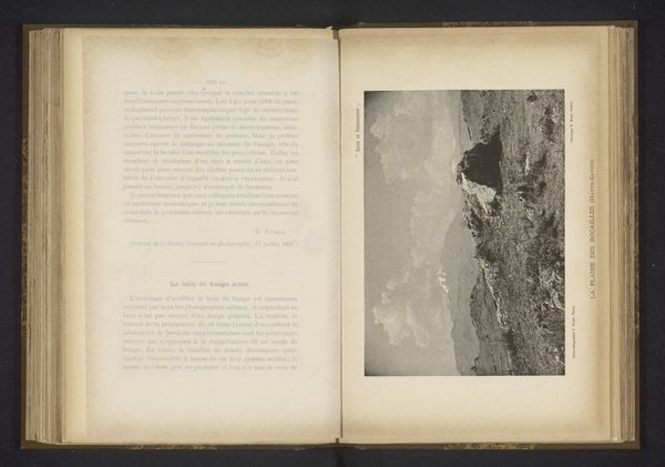Editor: This albumen print, entitled "Gezicht op een klooster in de bergen in Sri Lanka," or "View of a monastery in the mountains of Sri Lanka," dates from before 1899, and is attributed to E. Castelein. What strikes me is how small and isolated the buildings seem within the immensity of the landscape. How do you interpret the relationship between the built environment and the natural world here? Curator: The isolation isn’t just visual; it’s symbolic. Think about the role of monasteries in various cultures, particularly in Buddhism, a dominant faith in Sri Lanka. Often they represent spiritual retreat, a separation from the everyday world. The monastery perched amidst the mountains becomes a symbol of transcendence, a place aspiring to higher planes of consciousness. Does the print's monotone palette evoke any specific emotions for you? Editor: I suppose it gives it a kind of timeless, perhaps even solemn feel. Curator: Precisely. Black and white photography of that era also carries its own symbolic weight. It often speaks of a desire to document, to preserve a particular moment in time. Look how the landscape dominates the composition. It isn’t merely a backdrop; it’s an active presence, almost a character in the scene. What does this tell you about how people viewed nature then, and perhaps even now? Editor: It suggests a respect, a recognition of something powerful and enduring. The small monastery becomes a testament to human faith against the backdrop of nature's grandeur. Curator: Indeed. It encourages one to consider how specific places and visual forms have shaped spiritual and cultural identities across the world. Editor: It’s fascinating how a simple image can hold so much symbolic depth. I never thought about monasteries representing so much cultural memory and continuity.