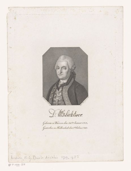 Editor: This is a print entitled "A. Hallander," dating roughly from 1767 to 1824. It’s currently held at the SMK, Statens Museum for Kunst. I’m struck by the precision of the lines. How the artist managed to create such a compelling likeness using what appears to be engraving, is remarkable. What aspects of this work stand out to you? Curator: Indeed. The clarity of line is central. Note how the artist uses the engraved line not merely to describe the form, but to modulate light and shadow. Observe the face: see how the density of lines shifts to delineate the contours, the hollows of the cheeks, and the stern expression. The entire composition hinges on this delicate interplay. Editor: So, the success of the portrait resides in the formal qualities of the engraving technique, such as the distribution of line, tone, and contrasts within that restricted oval format? Curator: Precisely. And consider also the semiotic dimension. The sitter's gaze, level and unwavering, in combination with the formal attire—a military uniform meticulously rendered with the precision of engraving—evokes a specific societal role and self-presentation. One might see reflections of Neoclassical ideals in the pursuit of perfect form and rational order, both evident in the engraving and the sitter’s austere posture. Editor: I see. It is like every line and shadow builds toward understanding how they are trying to create a lasting persona and a snapshot in history at the same time. Thanks. Curator: Yes, by analyzing its intrinsic elements, this artwork's ability to articulate ideas about power, class and individual character across time reveals itself.