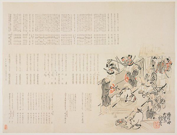 Curator: This is "Mount Wudang," a compelling ink and watercolor piece by Wu Guanzhong. The date is unspecified, but it encapsulates his unique fusion of traditional Chinese painting with modern abstraction. Editor: My first thought is—it breathes. There's a remarkable lightness to the rendering of this very solid-seeming mountain. Curator: Indeed. Notice how Guanzhong employs decisive, calligraphic lines to define the mountain's structure. These bold strokes contrast beautifully with the subtle washes, creating depth and a sense of monumental form. The formal relationships at play showcase a structured approach. Editor: Yet those seemingly random dots of color scattered across the slopes—pinks, yellows, blues—prevent it from feeling sterile. They suggest a memory of spring, maybe? Mount Wudang is a sacred Daoist site; colors resonate with prayers, hopes. It becomes a vibrant cultural signifier. Curator: You're drawn to the iconic dimension. I'm thinking of the pictorial structure itself. Consider the composition – the thrusting upward diagonal, bisected by that gentle curve. This imparts a dynamic tension, creating a play between stability and movement. It adheres to very precise geometries. Editor: Agreed, but let’s not ignore the suggestive power. Mountain, water, trees...the mountain, in particular, symbolizes permanence, refuge, aspiration in the collective unconscious. Those abstracted details almost amplify that effect by making them feel simultaneously concrete and ethereal. Curator: A good point. The visual vocabulary serves both purposes. Notice, too, the artist's adept use of negative space, allowing the 'whiteness' of the paper to serve as an integral part of the composition, defining contours and lending atmospheric perspective. The relationships of the elements. Editor: That "whiteness" becomes its own symbolic terrain – emptiness, potential. And the geometric aspect points to underlying sacred geometry. This links to practices such as meditation and divination – Mount Wudang would naturally connect those associations in an informed viewer. Curator: It really demonstrates how elemental formal elements become loaded with cultural weight, doesn’t it? It's the signifiers working as formal elements but also imbued with narrative potential. Editor: Precisely. Guanzhong captures more than just the mountain's form, he evokes a feeling of awe and reverence woven deeply into the cultural memory. Curator: A fascinating dialogue between artistic structure and enduring symbolism. Editor: An image echoing with a story it almost doesn’t need to tell.