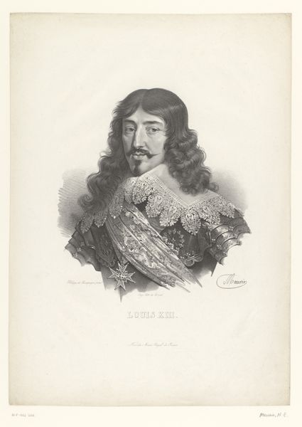 Constant Bourgeois created this print of Louis XIII, King of France. Without a date, it's hard to pinpoint the exact cultural context. Still, we can consider the historical perception of Louis XIII and how Bourgeois's print engages with or diverges from it. Louis XIII reigned during a period of intense religious and political conflict in France. He was often overshadowed by powerful figures like Cardinal Richelieu, his chief minister, leading to a perception of him as a somewhat passive ruler. This print, however, presents Louis XIII in a dignified and regal manner, emphasizing his authority and status. The intricate details of his attire, from the lace collar to the ornate armor, speak to the opulence and grandeur associated with the French monarchy. It invites us to consider the complex relationship between image and power, and how portraits like this one were used to shape and reinforce the image of the king. It prompts us to think about the tension between the personal and the political, and how individual identity is often subsumed within broader historical narratives.