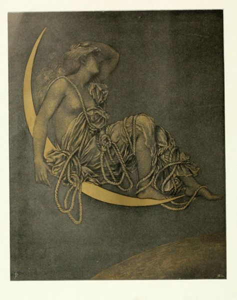 Walter Crane crafted this image of Venus with chalk and watercolor, a timeless reflection on beauty and perception. Here, Venus gazes into a mirror held by an attendant, seemingly studying her own reflection. This motif of self-regard, often associated with vanity, carries a deeper resonance when viewed through the lens of cultural memory. Consider the mirror itself, an object that appears throughout art history, from classical antiquity to the Renaissance. In earlier times, it was a symbol not just of beauty, but of truth and knowledge. The reflective surface invites introspection and is used to explore the complexities of identity, seen even in the works of Jan van Eyck. The act of gazing, laden with psychological weight, speaks to the human quest for self-understanding. Crane hints at this deeper meaning with the inclusion of a theatrical mask on the ground, a symbol of the persona. The mask and the mirror both reflect a fractured, multifaceted self. It is this non-linear, cyclical progression that keeps resurfacing and evolving, as each age interprets anew.