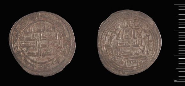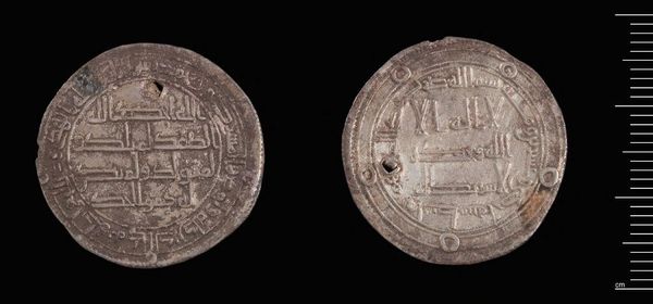 Curator: This silver dirham, created under the rule of Al-Walid I in Jayy, feels incredibly weighted with history. It’s a tangible link to a powerful dynasty. Editor: Yes, the patina is striking; it speaks volumes about trade routes, political power, and religious authority solidified through currency. What symbols do you see resonating here? Curator: The inscription, of course, is central. It's more than just script; it’s a visual representation of Islamic faith and governance. It's a statement of belief made permanent in metal. Editor: Absolutely, and that inscription—it's a public declaration. Currency was often one of the few ways that ordinary people encountered state power. It shaped perceptions. Curator: It served not just as a medium for economic exchange, but also as a vessel for cultural memory. A potent symbol of continuity and legacy. Editor: A constant reminder, wouldn't you agree? It makes you think about who held it, what they could buy, and how it shaped their world.