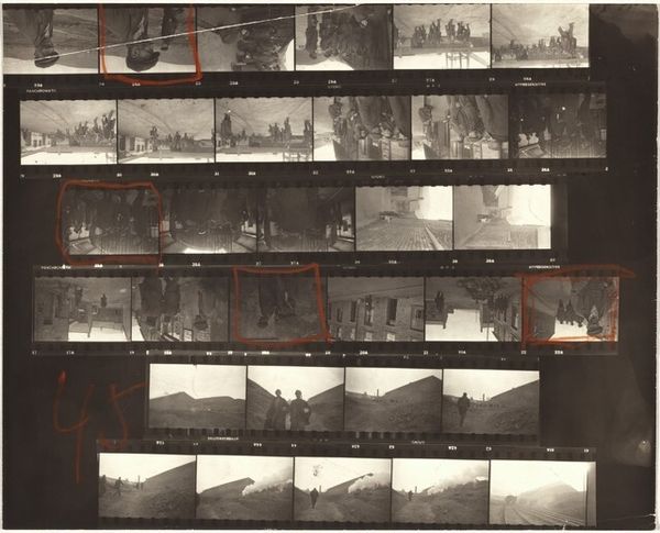 Robert Frank's "Wales 7" is a contact sheet – a series of small, raw images, like a painter's colour tests, or a writer's stream-of-consciousness notes. Frank lays out an unedited record of the photographic process. Look closely, and you'll see the marks of his hand: the bold red "7" scrawled across the images, the grease pencil edits, these marks transform what could be just a mechanical document into something deeply personal. There’s a real texture here, a layering of intent and accident. The black and white tonality lends a stark contrast, a visual punch that emphasizes the grit and grain of the film. It reminds me of the work of Garry Winogrand – that same restless energy, that feeling of capturing life as it unfolds, unvarnished and imperfect. Ultimately, "Wales 7" isn't just a collection of images; it's a meditation on seeing, on the choices we make as artists, and on the messy, beautiful process of creation itself.