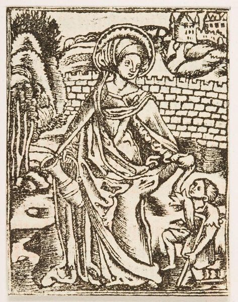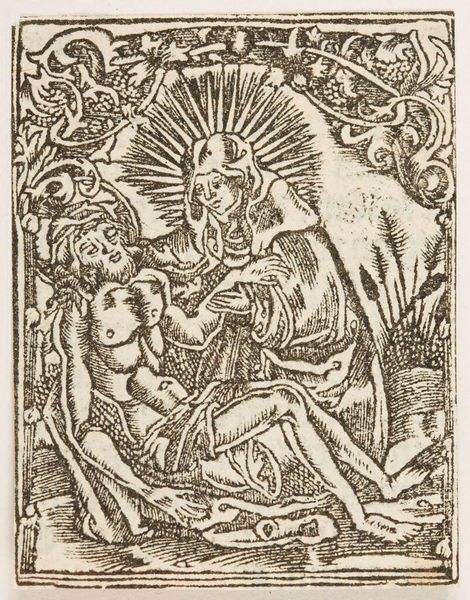 Editor: This is an anonymous piece called "Flight into Egypt," currently housed at the Harvard Art Museums. It's a stark black and white image, and the composition feels very direct. What strikes you about this work? Curator: It's fascinating how this relatively simple woodcut speaks to broader anxieties about displacement and refuge. Consider the historical context; such imagery often served as a powerful visual narrative for a largely illiterate public. The image makes their plight—the Holy Family as refugees—relatable. Editor: So, the power lies in its accessibility and how it reflects universal themes? Curator: Precisely. How do socio-political forces shape artistic representation, and in turn, how does art shape public perception? This piece exemplifies that interplay. Editor: That gives me a lot to think about. Thanks for your insights! Curator: My pleasure. It’s always enriching to consider art’s public role.