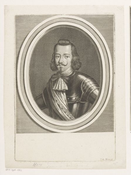 Editor: Here we have Wenceslaus Hollar’s "Charles I," an engraving made sometime between 1650 and 1670. The tiny scale and ornate frame give it an intimate, almost precious feeling. What historical layers do you see in this portrait? Curator: Absolutely, its preciousness belies a very turbulent and violent moment in British history. Consider that this image was created after Charles I's execution in 1649. The inscription, *Deus Meus Est Rupes Mea*, is Latin for “God is my rock”, referencing Psalm 18. Editor: So, it's invoking divine right even after the king has been overthrown and executed? Curator: Precisely! It’s a strategic piece of royalist propaganda meant to create a particular memory, or myth, around Charles I. Look at the careful construction of his image. Does it strike you as honest, straightforward? Or something else? Editor: I see your point. The lace collar, the carefully groomed beard… he's presented as refined, almost saintly. The portrait obscures the power struggles of the time, including the English Civil War, and Charles’s own role in creating division within the country. Curator: Exactly. It prompts us to ask: Whose story is being told, and for what purpose? How does it erase other narratives from the period? We should critically examine whose perspectives are highlighted and suppressed. It reveals how representation can shape collective memory and obscure marginalized voices. Editor: That's fascinating. It really puts the portrait in a new, much more complicated light for me. I had considered the subject, but not so much the object's role in shaping historical narrative. Curator: It's a good reminder to stay critical. Considering power dynamics can teach us so much.