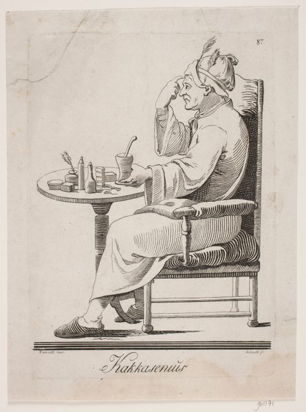 Editor: Here we have "The Coquettish Widow," an engraving by Simon Nicolas Duflos from 1747, currently housed at the Metropolitan Museum. It's… well, she's definitely got a "look" about her, doesn't she? Almost a hesitant eagerness. What strikes you most about this piece? Curator: Hesitant eagerness – I love that, and yes, it’s precisely that kind of delicious ambivalence that just gets me going! It’s like she's tiptoeing the line between proper mourning and…re-emergence. Don't you think the mirror becomes more than just a reflective surface? It’s a collaborator, a silent partner in her… becoming? Editor: A collaborator… Interesting! I hadn’t thought of it that way. It seems to add a layer of vanity, perhaps? Or is that too simplistic? Curator: Simplistic? Darling, everything's simplistic if you don't dig deep enough! Vanity's a starting point, sure, but maybe it’s also about control? This woman, now widowed, gets to curate her own image, her own destiny. And think about the Rococo style here – all those curves and frills weren’t just for show; they were about celebrating a certain… lightness of being. And here it comes, laced with just a touch of daring. Almost as if the line wasn’t the weight to lose – what if that woman suddenly decided *to lose her head?* Editor: So, it's less about blatant flirtation and more about reclaiming agency through appearance? Curator: Exactly! It's a wink and a prayer wrapped up in silk and rouge! The power is in the suggestion, in that exquisite dance between freedom and fear. Editor: Wow, I'll never look at a Rococo portrait the same way again! Curator: Oh, good! Mission accomplished. And remember, darling, the best art always holds a mirror up to our own complicated selves, too. What would our mirror say, should it talk, and do so looking over our own vanity?