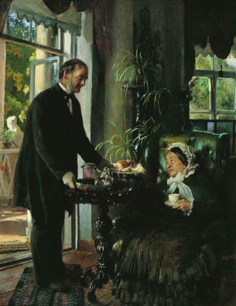 Norman Rockwell painted this evocative scene of a Grandfather and Grandson, capturing a tender moment between generations. The grandfather prepares to light a cigar, a symbol of wisdom and shared stories. The young boy listens attentively, seated on a footstool, his gaze fixed on the elder. The cigar, held between the grandfather's fingers, is reminiscent of ancient rituals—a modern echo of sacred flames passed down through time. The sharing of tobacco, like the passing of a torch, signifies the transfer of knowledge and experience. Compare this to images of elders in tribal cultures sharing pipes, linking this domestic scene to something primal and deeply embedded in our collective unconscious. This seemingly simple image is charged with the weight of history, speaking to the cyclical nature of life and the enduring power of family bonds.