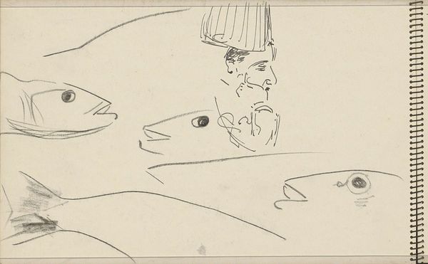 Samuel Jessurun de Mesquita made this pencil drawing of a figure's legs, a hat, and a head in profile, sometime before he died in 1944. The quickness of the marks really grabs me; you can see the artist thinking on the page. The legs are just a few lines, but they totally read as legs! It’s like he's saying, "Here's the essence of leg-ness." It's kind of funny and profound at the same time. And then there's the hat, this big, almost cartoonish shape. It reminds me a bit of Picasso, how he could distill a form down to its most basic elements. The materiality is so simple, just pencil on paper, but the effect is complex. I wonder if de Mesquita was looking at other artists, maybe simplifying and abstracting like they were? Art's just one big conversation. We all chime in! The date scrawled on the bottom right corner, almost like a nervous tic.