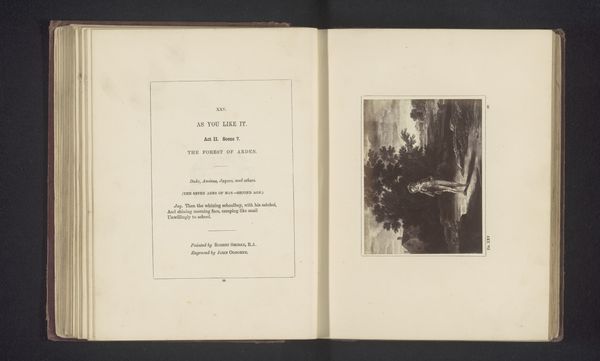 Curator: This print presents a reproduction of a painting by George Romney, created before 1864. It's titled "Fotoreproductie van een prent naar een schilderij door George Romney, voorstellend William Shakespeare als baby omringt door personificaties van de natuur en de driften"—quite a mouthful, but apt, don't you think? Editor: Yes, apt indeed. My first impression is of an idealized, almost cloying scene. The soft lines and swirling figures evoke a sense of sentimental nostalgia, a very romanticised vision of artistic genius in the making. Curator: Precisely! And consider the imagery here. We have infant Shakespeare attended by Nature and, as the title indicates, the passions. Nature is quite literally unveiling the child's face. Do you read something symbolic in that gesture? Editor: Absolutely. The unveiling signifies the revealing of innate talent, the idea that Shakespeare was destined for greatness from birth, nurtured by both nature and the chaotic forces of human emotion – love, hatred, anger all those drives personified hovering around his cradle. Curator: Those forces shaping him... So, what’s your take on the visual language, the overall composition conveying ideas circulating around Shakespeare as an icon? Editor: I find the print visually embodies a construction of Shakespeare as this romantic hero. We can imagine, that printmaking allowed this ideal to circulate far beyond any single gallery wall, creating and reflecting the social conditions and perceptions around the Shakespeare's legacy, Curator: It's fascinating to consider how this pre-photography print serves to shape our understanding of an individual whose impact still resonates profoundly today. What are some thoughts, you take with you after looking at this image? Editor: The power of imagery, it really prompts me to consider the construction of genius through accessible visuals and that it reflects collective memory and how cultural heroes are fashioned in a public sphere. Curator: Absolutely, how visual narratives cement and continuously renews these complex meanings that we're all a part of.