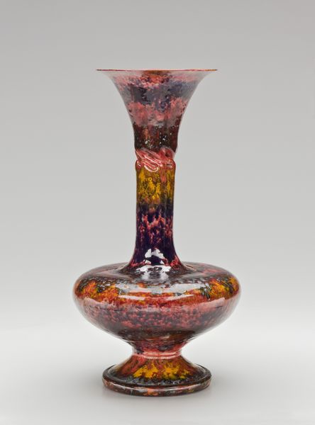 This vase was made by Louis Comfort Tiffany, who lived from 1848 to 1933. Tiffany was celebrated for his innovative use of glass, pushing the boundaries of color and texture. In this piece, molten glass was carefully manipulated. Different colors of glass were layered and swirled together, resulting in an iridescent surface. While Tiffany himself was the creative force behind these designs, they were executed in a factory context. Many skilled glassworkers were involved in the production process. They were not simply following instructions, but rather using their expertise to coax these incredible effects from the material. Tiffany's company was tapping into the rich traditions of glassblowing, but also applying them to a new context of industrial production. It’s a great example of how handcraft and industrial labor can come together to create something truly special. Ultimately, the importance of this vase lies not only in its aesthetic beauty, but also in understanding the modes of its production. The finished object is a testament to the interplay between art, craft, and industry.