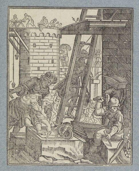 Editor: This print, “God én de mammon dienen gaat niet,” made in 1629 by Christoffel van Sichem II, depicts a complex scene split in two. There's a definite contrast between the confined space on the left and the seemingly grand world on the right. What kind of symbolic reading would you give to a piece like this? Curator: Given the title—serving both God and Mammon is impossible—we're immediately directed toward a moral conflict, aren’t we? Notice how Sichem contrasts the imagery on either side of the wall. The left shows a man focused on coins within a confined space—perhaps representing earthly wealth and greed. But what about the visual language used to portray the figures on the right side of the image? What elements there speak to you? Editor: Well, there’s a king sitting on a throne being attended to. And there is what looks like laborers toiling in a field, and also what appear to be armed soldiers and religious figures praying and honoring the king. The right side looks dynamic, public, almost aspirational. Curator: Exactly. On the right, we see societal hierarchy and perhaps spiritual aspirations, yet observe the wild animals and disorganized elements breaking up any possible unity on the right-hand side.. Do those elements point toward the chaotic nature of earthly pursuits and distractions, ultimately suggesting the impossibility of sincerely dedicating oneself to both spiritual and material desires simultaneously? Consider what that might say about Dutch society at the time. Editor: So, the image, through its division and contrasting symbolism, visually argues that one must choose between earthly riches and devotion to God? That division speaks powerfully. Curator: Precisely! And through the formal balance achieved despite the differing iconographic programs in either scene, this print encapsulates the enduring struggle within individuals and societies to prioritize values. The engraving offers us a glimpse into a cultural and historical framework still so relevant. Editor: I see now how loaded with cultural memory these images truly are; the artist's choices tell us so much about a moment in time and still reverberate today.