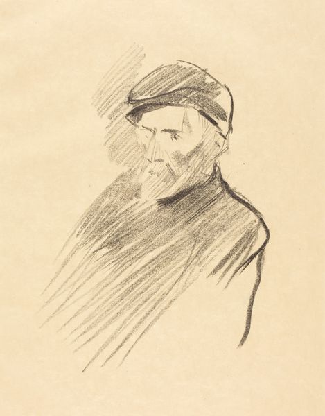 Editor: This is a pencil drawing by Paul Gauguin, created around 1878. It’s titled “Henri Gauguin, l’oncle de l’artiste,” which means “Henri Gauguin, the artist’s uncle.” The sketchy lines give the portrait a raw, unfinished feel. What do you see in this piece? Curator: I see a deliberate, though seemingly spontaneous, rendering of a cultural memory. Gauguin is not merely depicting his uncle, he's capturing an essence. Notice how the shading around the eyes gives them a weighted, almost melancholic feel. This reminds us that portraits, particularly within families, carry the burden of history and expectation. The beard becomes almost symbolic of inherited wisdom or perhaps even societal burdens. Editor: That's a fascinating point. Do you think Gauguin's later interest in symbolism in his paintings might already be present in this early portrait? Curator: Absolutely. While the drawing is more literal than his later paintings, we can see Gauguin already grappling with how to imbue an image with more than just surface-level representation. Consider the absence of background detail, forcing the viewer to focus solely on the face – a face carrying untold stories. It begs the question, what was Gauguin trying to remember, or perhaps forget, about his family history? Editor: So the sketch itself functions almost like a mnemonic device? Curator: Precisely. Visual images act as conduits to cultural memory, linking us to past narratives and shaping our understanding of identity and lineage. The fact that he chose to portray his uncle suggests a significant relationship or influence. Do you find that the uncle's gaze appears to hold secrets? Editor: It does, a sense of looking inward, almost troubled. It's more than just a likeness. It’s been fascinating to consider the drawing not just as a portrait, but as a coded family artifact. Curator: And in decoding these images, we gain a deeper appreciation of their enduring power. Every line, every shadow, holds a piece of the puzzle of our shared human experience.