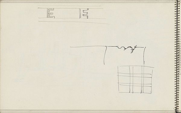Editor: Here we have Stuart Davis’s "Calculations and Sketches." There isn’t a date associated with this piece at the Harvard Art Museums, but it’s a small work on paper. It appears to be pen or pencil, and it looks like a study for a more complex piece. What do you see in this seemingly simple sketch? Curator: I see Davis wrestling with form and proportion, but also potentially critiquing the very systems we use to quantify and understand the world. The calculations feel almost like a challenge to the rigid structures of modernism. How do mathematical systems intersect, or perhaps collide, with artistic expression? Editor: So, the math isn't just planning, it's part of the statement? Curator: Precisely. The visible calculations disrupt any sense of seamless artistic creation, foregrounding the often-invisible labor and intellectual frameworks that underpin artistic production, even questioning their authority. It makes me think about the role of quantification in shaping our perceptions. What do you make of that? Editor: I hadn’t considered the social implications of math, but I see how it relates here, especially because it feels so raw. Curator: Indeed. Hopefully, it inspires us to think critically about all the systems that shape our experience.
