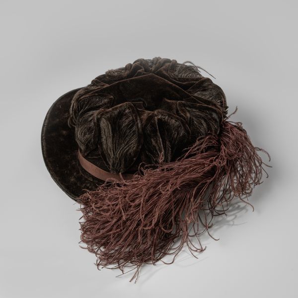 This flat hat made of black velvet and iridescent rooster feathers was crafted by Elysee Modes. While undated, the materials and style connect it to earlier ideas about beauty and fashion. Once, the hat was a potent signifier of femininity and status. The use of feathers, however, raises questions about ethics, fashion, and historical context. How were these feathers acquired? What impact did the demand for such adornments have on bird populations and ecosystems? The hat’s allure is complicated when you consider these concerns. It reflects a time when fashion often overshadowed environmental issues and animal welfare. This hat, with its dark iridescence, speaks of desire and luxury. But it also tells a story about the complex relationship between fashion, identity, and our environment. It asks us to consider the cost of beauty.