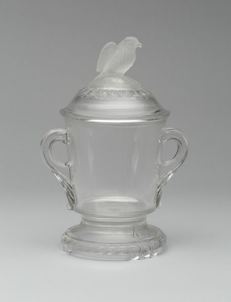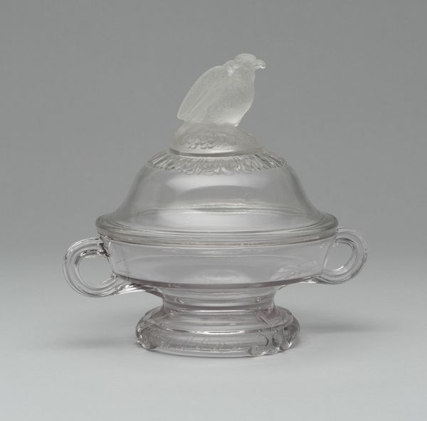 This "Old Abe" compote, made by the Crystal Glass Company, showcases a frosted eagle, a symbol laden with historical and cultural weight. The eagle, perched proudly atop the lid, immediately evokes the American spirit and its aspirations of freedom and power. This motif has deep roots, tracing back to ancient civilizations where the eagle symbolized strength and nobility. We see echoes of this in the Roman Empire, where the eagle was a military emblem, and in various mythologies, where it often served as a messenger of the gods. In the American context, this symbol is potent. It represents the nation's identity and its ambitions on the world stage. The frosted texture adds an ethereal quality, almost as if it's a ghost of past ideals. The choice of the eagle speaks to the collective unconscious. It stirs up feelings of national pride but also hints at the burdens of history. It is a potent symbol, a thread in the vast tapestry of human expression, constantly re-emerging with new significance.