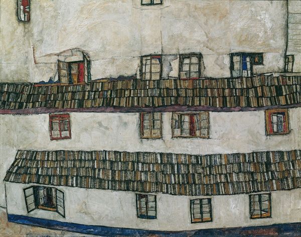 Egon Schiele made "Houses With Laundry" with oil on canvas, though when he made it exactly, we don't know. There is something quite slap-dash about the way Schiele has worked here. He's got this palette of drab browns, reds and greens, but then he punches it up with these vibrant pops of colour in the laundry lines. Look at the way the paint is applied. It’s thin in places, almost transparent, allowing the texture of the canvas to show through. Then in other areas, like around the buildings, it's built up, thick and almost crusty. This adds depth and physicality to the work. Look at that heavy grey line along the top. It’s almost sculptural. It’s like he’s dragging the sky down onto the scene. Schiele’s got this really raw, expressionistic quality. It makes me think of other Austrian painters like Oskar Kokoschka. It's a reminder that art doesn't always need to be polished and perfect; it can be messy, raw, and full of emotion. It’s like a conversation between artists across time, each adding their own voice to the mix.